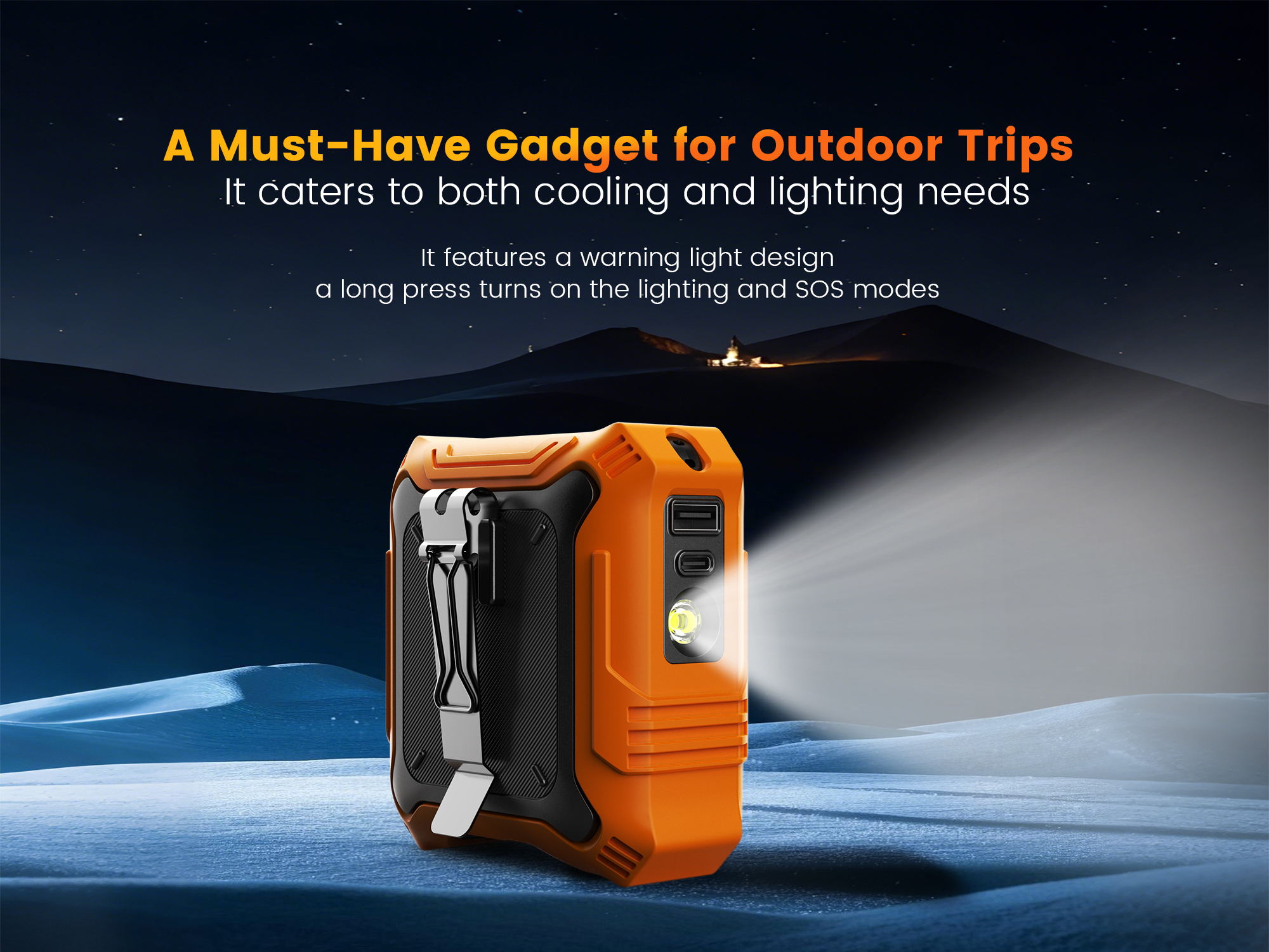 Podróże, festiwale i codzienne noszenie Od gorących dworców kolejowych, przez koncerty plenerowe, po jednodniowe wycieczki, M38B sprawdzi się również jako towarzysz podróży. Przypnij go do paska torby lub saszetki, gdy stoisz w miejscu, lub do paska, gdy jesteś w ruchu. Ten model wentylatora na talię sprawdzi się zarówno w czasie wolnym, jak i w sytuacjach praktycznych, pomagając zachować chłód podczas długich postojów, upałów lub w zatłoczonych miejscach na świeżym powietrzu.